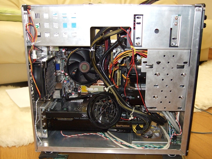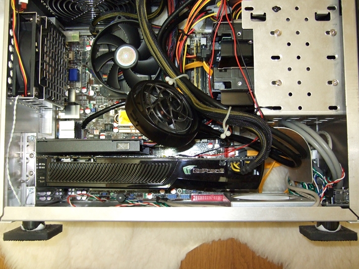 このケース、マイクロマザー専用ながら、GTX285とかも入ってしまう不思議君です。